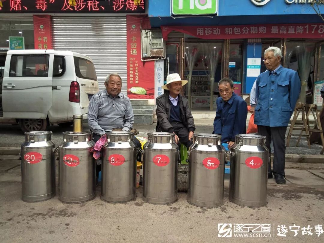 不远处还有几个大爷坐在一排,身前摆着一排白酒桶。大爷说他已经在三家场卖了30几年的酒了,都是自己亲手酿的。