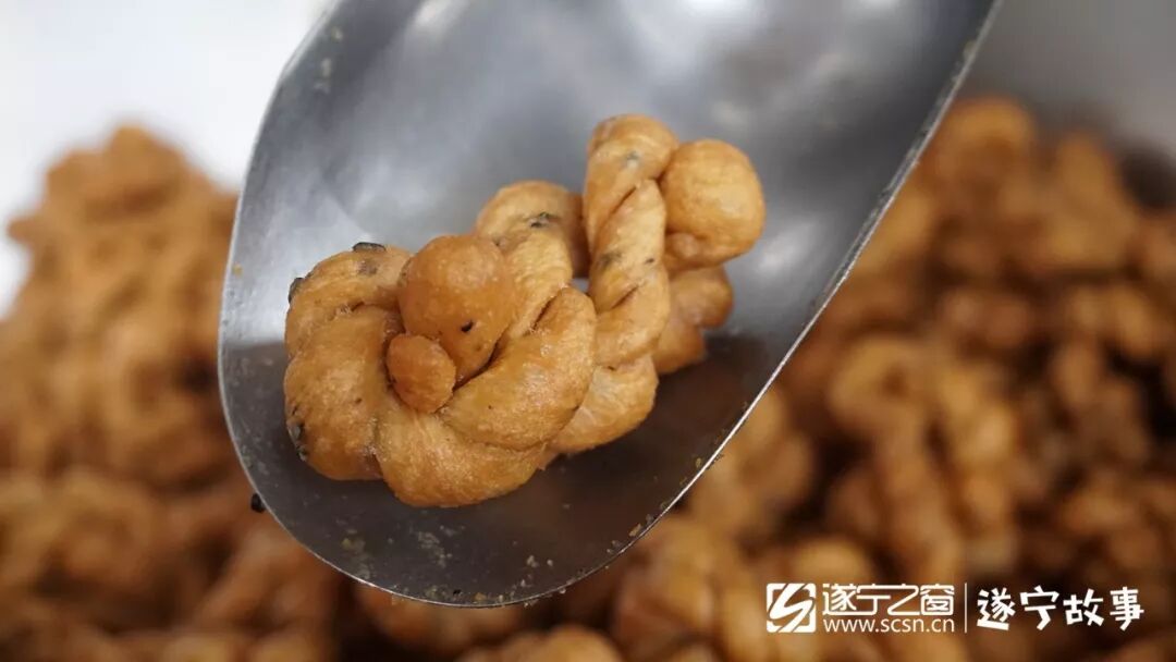 有观音文化的底蕴加持,再加上政府的扶持,经过不懈的努力。如今遂宁的观音素麻花不仅入选遂宁市十大小吃,被评为遂宁非物质文化遗产,也是很多遂宁人向外地推广的一张美食名片!
